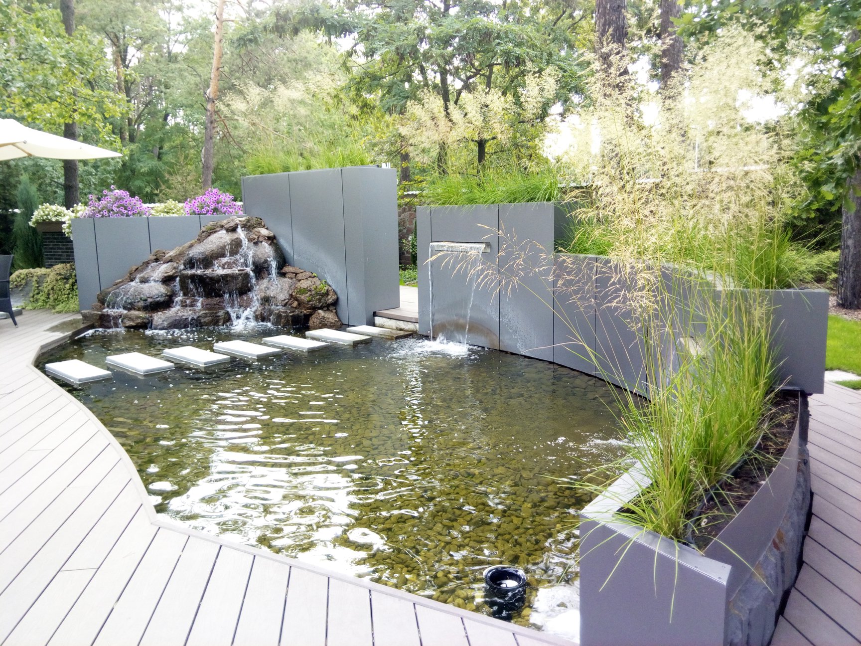 МС Ландшафт занимается устройством водяных участков. Мы осуществляем полный комплекс мероприятий, касающихся этого направления деятельности. Проектирование, выбор необходимых материалов и систем, создание бассейнов и водовместилищ, оснащение водой и другими услугами для оформления идеального декора для дачи, частного дома или любой области прилегающей к водной поверхности. Наше агентство предоставляет сервисы обустройства по выгодной стоимости, на которую влияет география локации, стройматериалы, тип строительных мероприятий и их количество.